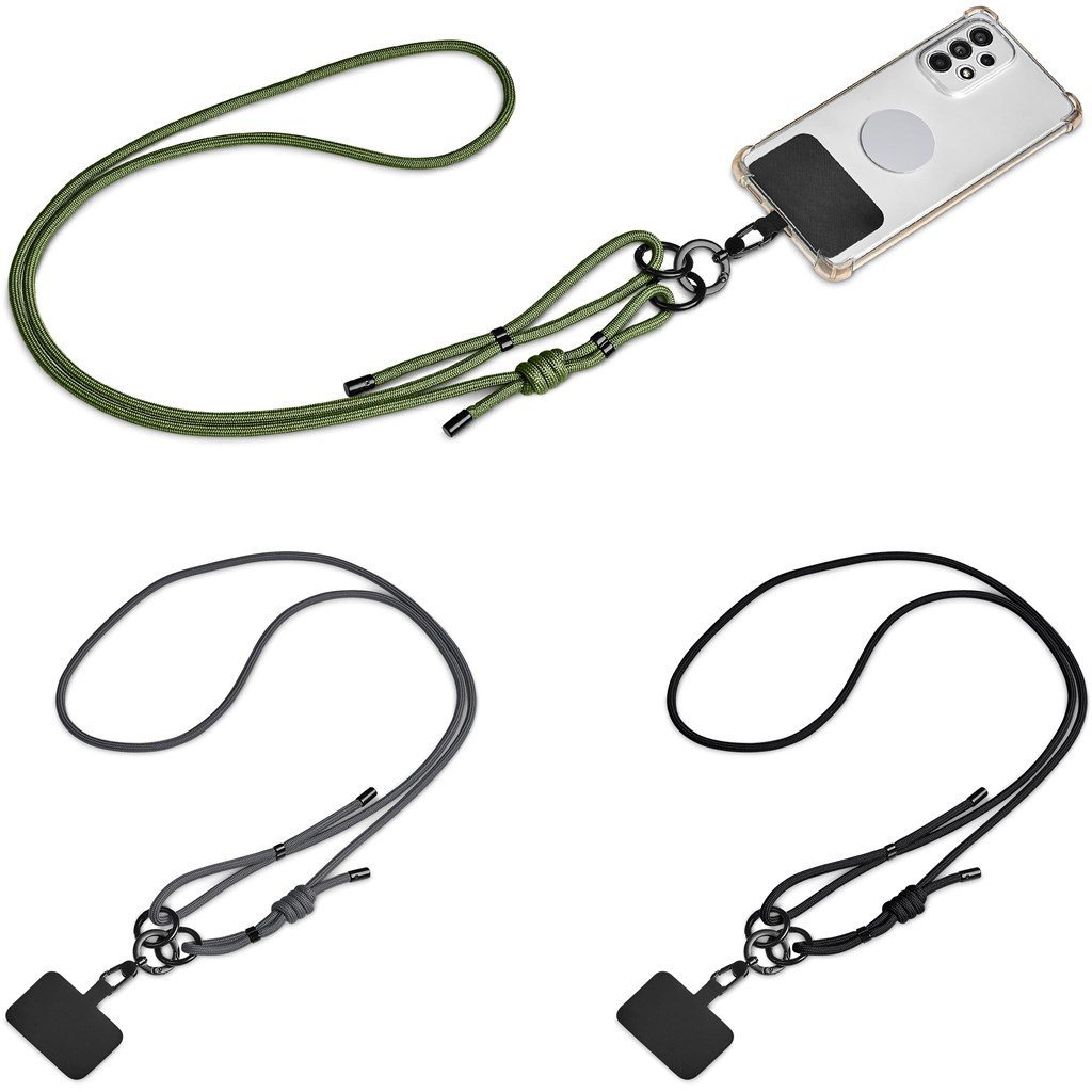 Phone straps have become a popular way to not only carry a phone, but also to help prevent dropping or misplacing it. The patch fits between the phone and a phone case, with a loop popping out of the charger port opening of the case. The loop can then be attached to the clip of the adjustable strap. By adjusting the length of the strap, you can choose to wear it as a crossbody strap, a shoulder strap or a neck strap. It can also be used as bag strap, by removing the clip and the patch, and then connecting the two remaining clips to a bag which is fitted with D-rings.